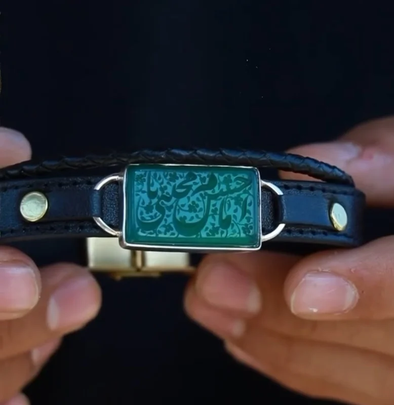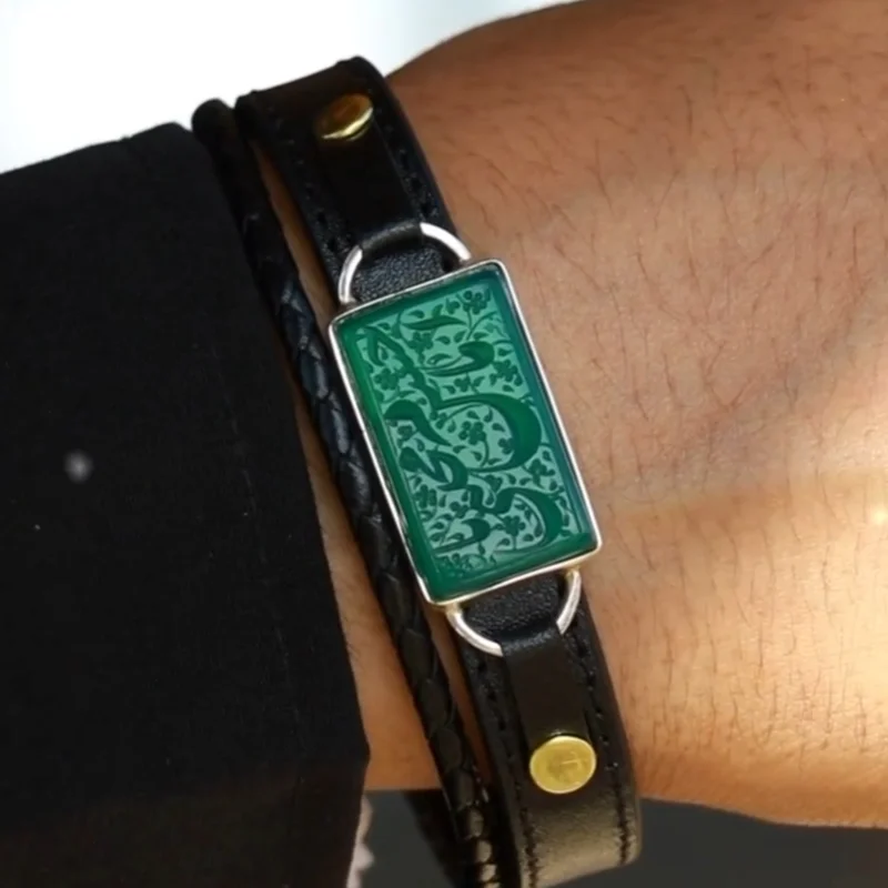 دستبند تلفیقی نقره و چرم مردانه با سنگ عقیق سبز درجه یک ، قاب سنگ از نقره اصل با عیار بین المللی 925 ساخته شده و دارای ضخامت استاندارد و کیفیت بالایی میباشد ، دستبند انتخابی شما قابل سایز میباشد و شما خودتان میتوانید به راحتی سایز دستبند را تغییر دهید.