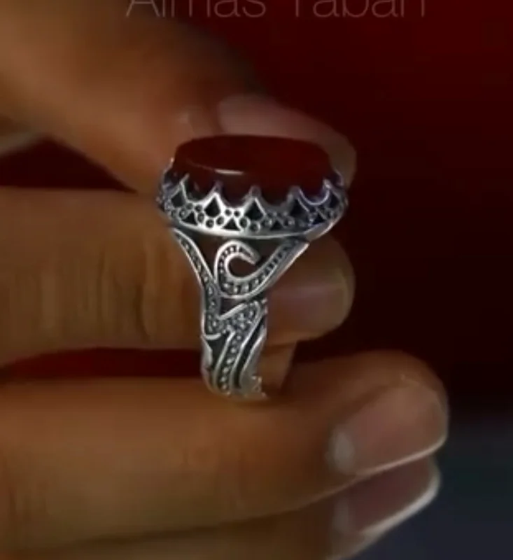 انگشتر نقره مردانه با سنگ عقیق سرخ درجه یک ، رکاب انگشتر از نقره اصل با عیار بین المللی 925 ساخته شده و دارای ضخامت استاندارد و کیفیت بالایی میباشد ، انگشتر انتخابی شما قابل سایز میباشد و شما میتوانید از منوی بالا ، سایز رکاب خود را انتخاب نمایید. (چنانچه از سایز انگشت خود اطلاعی ندارید در زمان ثبت سفارش گزینه "اطلاع ندارم" را انتخاب بفرمایید تا همکاران ما در اسرع وقت در رابطه با نحوه اندازه گیری سایز انگشتر با شما تماس بگیرند)
