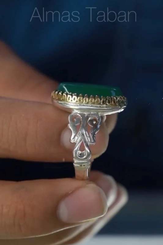 انگشتر نقره مردانه با سنگ عقیق سبز درجه یک ، رکاب انگشتر از نقره اصل با عیار بین المللی 925 ساخته شده و دارای ضخامت استاندارد و کیفیت بالایی می‌باشد ، انگشتر انتخابی شما قابل سایز می‌باشد و شما می‌توانید از منوی بالا ، سایز رکاب خود را انتخاب نمایید. (چنانچه از سایز انگشت خود اطلاعی  ندارید در زمان ثبت سفارش گزینه "اطلاع ندارم" را انتخاب بفرمایید تا همکاران ما در اسرع وقت در رابطه با نحوه اندازه گیری سایز انگشتر با شما تماس بگیرند)