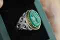 انگشتر نقره مردانه با سنگ عقیق سبز درجه یک ، رکاب انگشتر از نقره اصل با عیار بین المللی 925 ساخته شده و دارای ضخامت استاندارد و کیفیت بالایی میباشد ، انگشتر انتخابی شما قابل سایز میباشد و شما میتوانید از منوی بالا ، سایز رکاب خود را انتخاب نمایید. (چنانچه از سایز انگشت خود اطلاعی ندارید در زمان ثبت سفارش گزینه "اطلاع ندارم" را انتخاب بفرمایید تا همکاران ما در اسرع وقت در رابطه با نحوه اندازه گیری سایز انگشتر با شما تماس بگیرند)