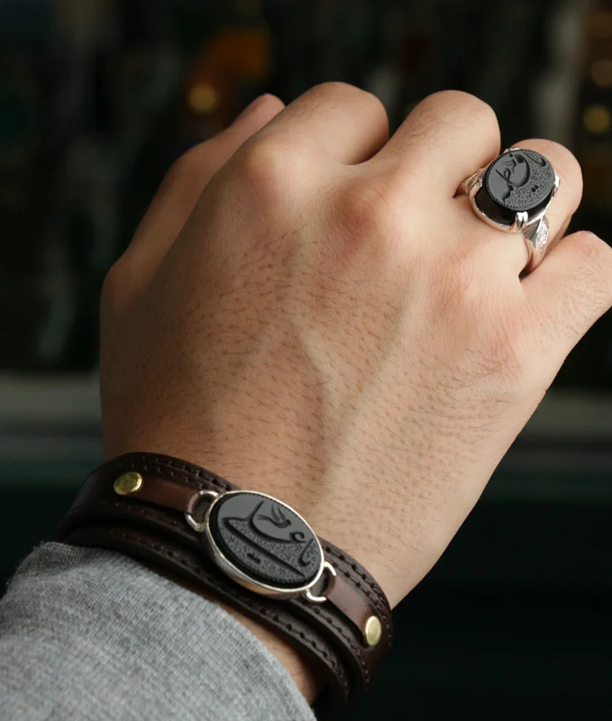 ست انگشتر و دستبند نقره مردانه با سنگ عقیق مشکی درجه یک ، رکاب انگشتر از نقره اصل با عیار بین المللی 925 ساخته شده و دارای ضخامت استاندارد و کیفیت بالایی می باشد ، انگشتر انتخابی شما قابل سایز میباشد و شما میتوانید از منوی بالا ، سایز رکاب خود را انتخاب نمایید. (چنانچه از سایز انگشت خود اطلاعی ندارید در زمان ثبت سفارش گزینه "اطلاع ندارم" را انتخاب بفرمایید تا همکاران ما در اسرع وقت در رابطه با نحوه اندازه گیری سایز انگشتر با شما تماس بگیرند)