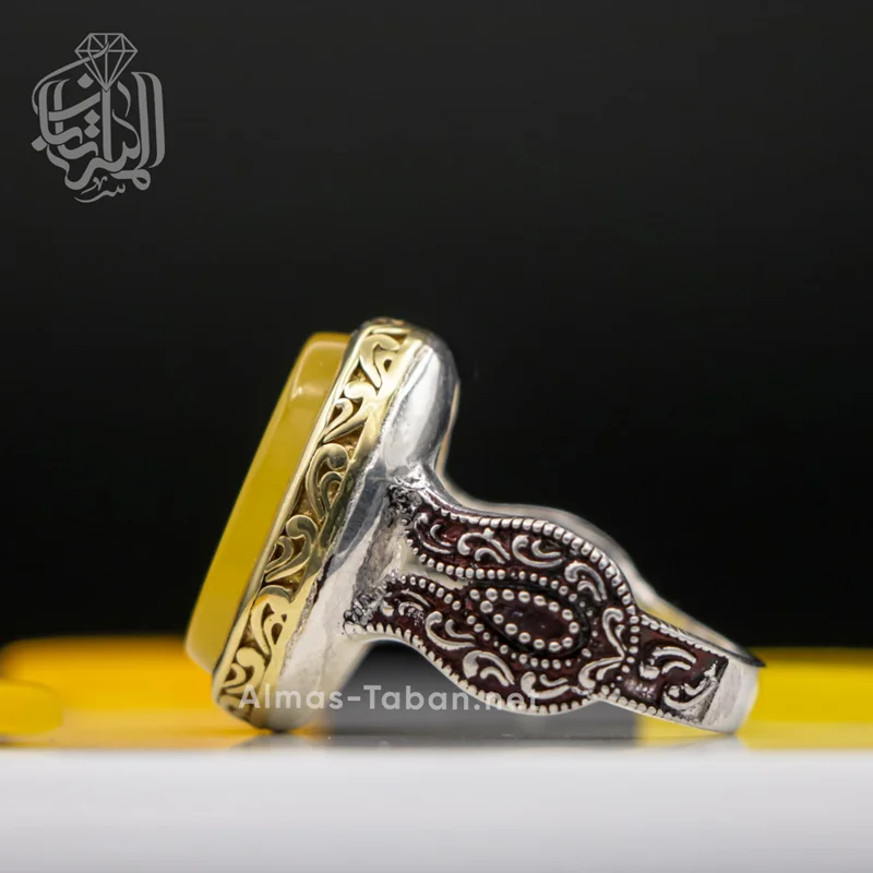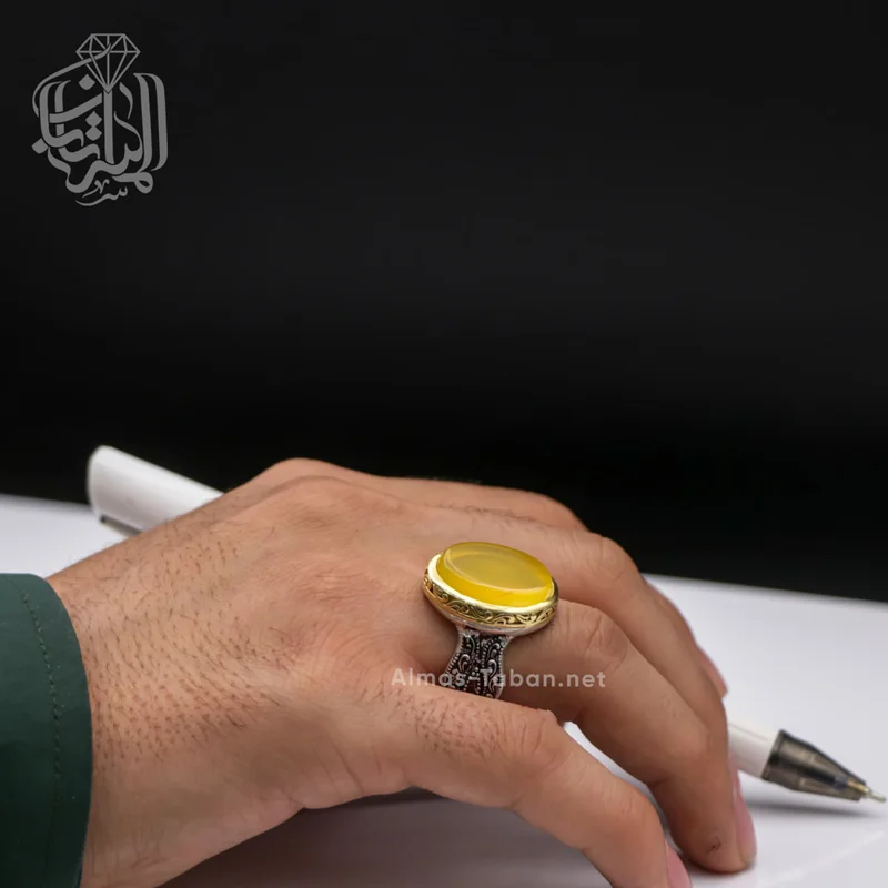 انگشتر نقره مردانه با سنگ عقیق زرد ( آماده حکاکی ذکر شرف الشمس با کلیه آداب مربوطه و به نام شما در 19 فروردین ماه) ، رکاب این انگشتر از نقره اصل با عیار بین المللی 925 ساخته شده و دارای ضخامت استاندارد و کیفیت بالایی میباشد.تمامی شرف الشمس های گالری الماس تابان با رعایت کلیه آداب مربوطه و در ساعت خاص و در صورت تمایل به نام شخص حکاکی می شوند. چنانچه تمایل دارید این دعا به نام شما و اختصاصی نوشته شود لطفا در هنگام ثبت سفارش در قسمت توضیحات نام کوچک خود و نام کوچک مادر خود را درج نمایید.