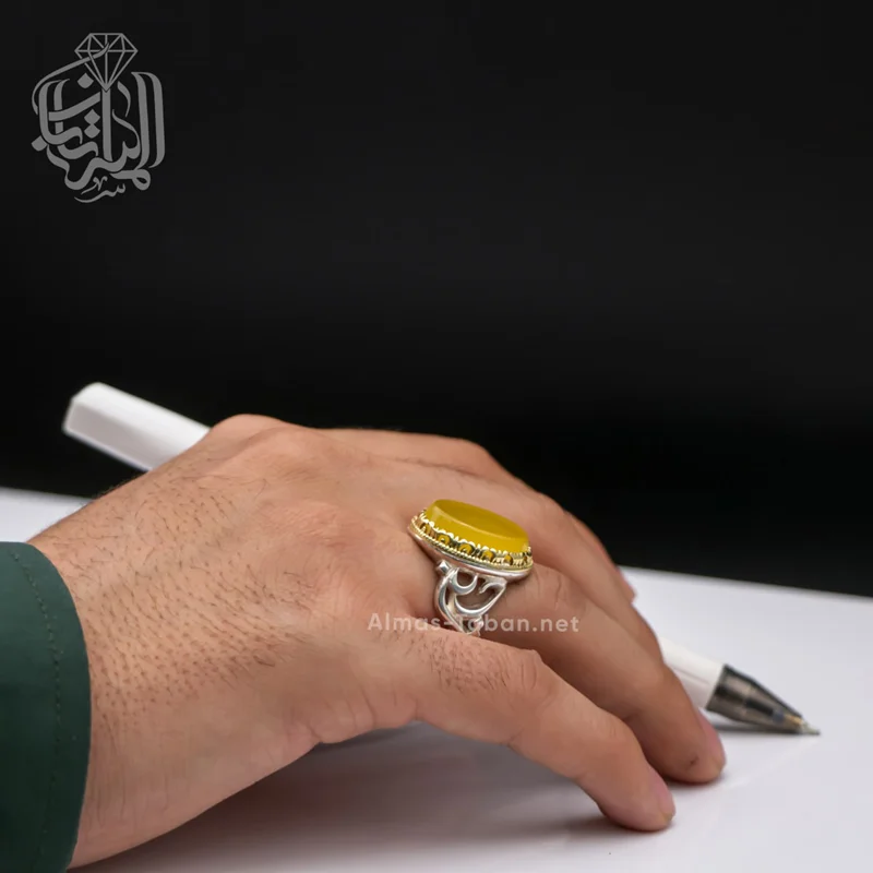 انگشتر نقره مردانه با سنگ عقیق زرد ( آماده حکاکی ذکر شرف الشمس با کلیه آداب مربوطه و به نام شما در 19 فروردین ماه) ، رکاب این انگشتر از نقره اصل با عیار بین المللی 925 ساخته شده و دارای ضخامت استاندارد و کیفیت بالایی می‌باشد.تمامی شرف الشمس های گالری الماس تابان با رعایت کلیه آداب مربوطه و در ساعت خاص و در صورت تمایل به نام شخص حکاکی می شوند. چنانچه تمایل دارید این دعا به نام شما و اختصاصی نوشته شود لطفا در هنگام ثبت سفارش در قسمت توضیحات نام کوچک خود و نام کوچک مادر خود را درج نمایید.