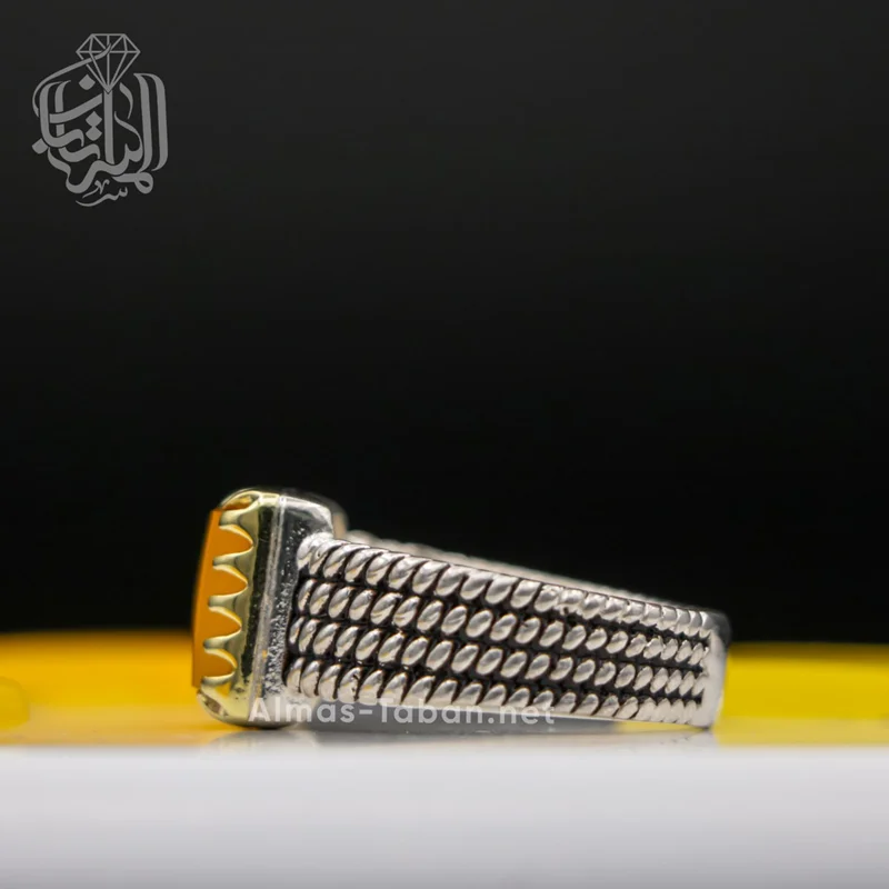 انگشتر نقره مردانه با سنگ عقیق زرد ( آماده حکاکی ذکر شرف الشمس با کلیه آداب مربوطه و به نام شما در 19 فروردین ماه) ، رکاب این انگشتر از نقره اصل با عیار بین المللی 925 ساخته شده و دارای ضخامت استاندارد و کیفیت بالایی می‌باشد.تمامی شرف الشمس های گالری الماس تابان با رعایت کلیه آداب مربوطه و در ساعت خاص و در صورت تمایل به نام شخص حکاکی می شوند. چنانچه تمایل دارید این دعا به نام شما و اختصاصی نوشته شود لطفا در هنگام ثبت سفارش در قسمت توضیحات نام کوچک خود و نام کوچک مادر خود را درج نمایید.