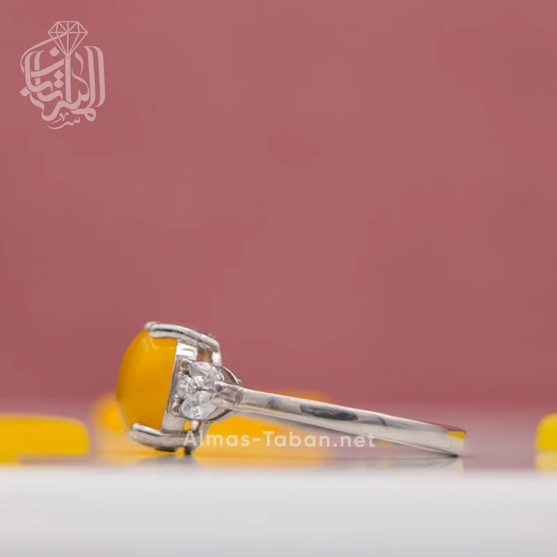 انگشتر نقره زنانه با سنگ عقیق زرد ( آماده حکاکی ذکر شرف الشمس با کلیه آداب مربوطه و به نام شما در 19 فروردین ماه) ، رکاب این انگشتر از نقره اصل با عیار بین المللی 925 ساخته شده و دارای ضخامت استاندارد و کیفیت بالایی میباشد.تمامی شرف الشمس های گالری الماس تابان با رعایت کلیه آداب مربوطه و در ساعت خاص و در صورت تمایل به نام شخص حکاکی می شوند. چنانچه تمایل دارید این دعا به نام شما و اختصاصی نوشته شود لطفا در هنگام ثبت سفارش در قسمت توضیحات نام کوچک خود و نام کوچک مادر خود را درج نمایید.
