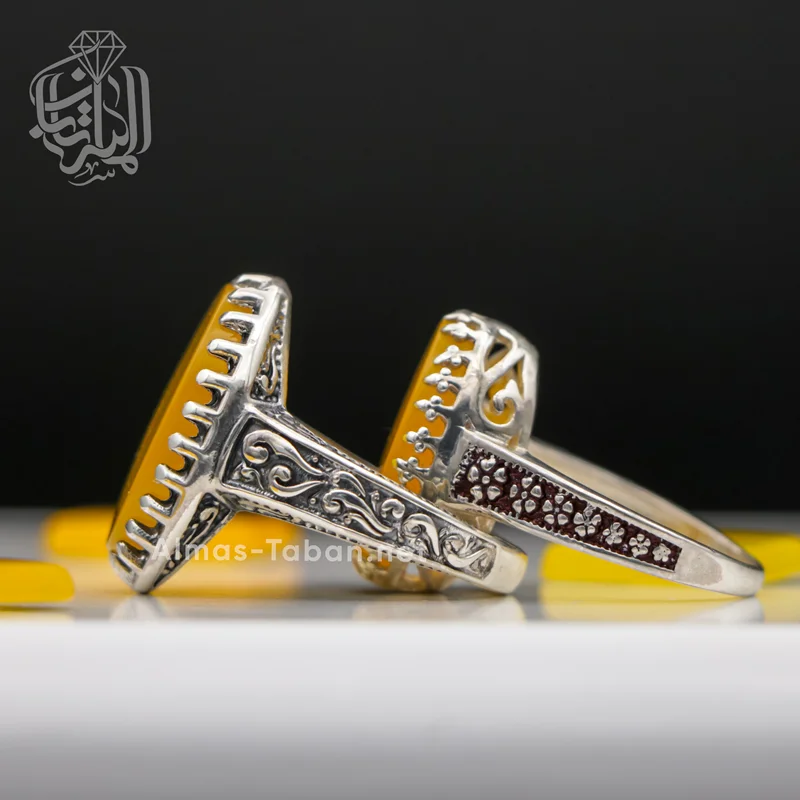 ست انگشتر زنانه و مردانه نقره با سنگ عقیق زرد ( آماده حکاکی ذکر شرف الشمس با کلیه آداب مربوطه و به نام شما در 19 فروردین ماه) ، رکاب این انگشتر ها نقره اصل با عیار بین المللی 925 ساخته شده و دارای ضخامت استاندارد و کیفیت بالایی میباشد.تمامی شرف الشمس های گالری الماس تابان با رعایت کلیه آداب مربوطه و در ساعت خاص و در صورت تمایل به نام شخص حکاکی می شوند. چنانچه تمایل دارید این دعا به نام شما و اختصاصی نوشته شود لطفا در هنگام ثبت سفارش در قسمت توضیحات نام کوچک خود و نام کوچک مادر خود را درج نمایید.