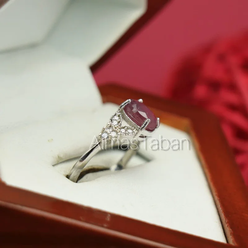 انگشتر نقره زنانه با سنگ یاقوت سرخ اصل ، رکاب انگشتر از نقره اصل با عیار بین المللی 925 ساخته شده و دارای ضخامت استاندارد و کیفیت بالایی میباشد ، انگشتر انتخابی شما قابل سایز میباشد و شما میتوانید از منوی بالا ، سایز رکاب خود را انتخاب نمایید. (چنانچه از سایز انگشت خود اطلاعی ندارید در زمان ثبت سفارش گزینه "اطلاع ندارم" را انتخاب بفرمایید تا همکاران ما در اسرع وقت در رابطه با نحوه اندازه گیری سایز انگشتر با شما تماس بگیرند)