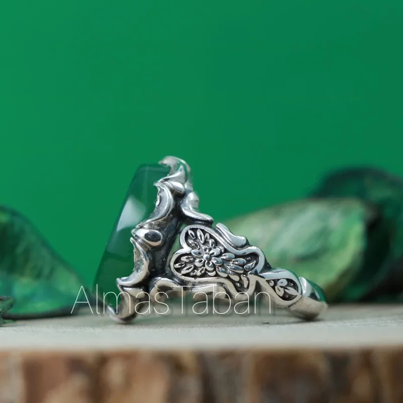 انگشتر نقره مردانه با سنگ عقیق سبز درجه یک ، رکاب انگشتر از نقره اصل با عیار بین المللی 925 ساخته شده و دارای ضخامت استاندارد و کیفیت بالایی می‌باشد ، انگشتر انتخابی شما قابل سایز می‌باشد و شما می‌توانید از منوی بالا ، سایز رکاب خود را انتخاب نمایید. (چنانچه از سایز انگشت خود اطلاعی ندارید در زمان ثبت سفارش گزینه "اطلاع ندارم" را انتخاب بفرمایید تا همکاران ما در اسرع وقت در رابطه با نحوه اندازه گیری سایز انگشتر با شما تماس بگیرند)