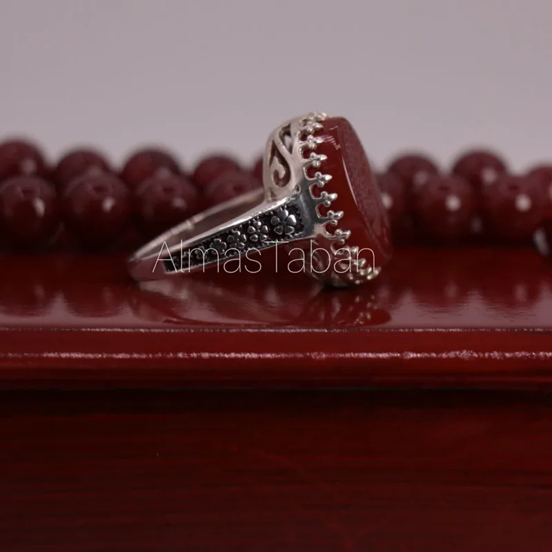انگشتر نقره زنانه با سنگ عقیق سرخ درجه یک ، رکاب انگشتر از نقره اصل با عیار بین المللی 925 ساخته شده و دارای ضخامت استاندارد و کیفیت بالایی می‌باشد ، انگشتر انتخابی شما قابل سایز می‌باشد و شما می‌توانید از منوی بالا ، سایز رکاب خود را انتخاب نمایید. (چنانچه از سایز انگشت خود اطلاعی ندارید در زمان ثبت سفارش گزینه "اطلاع ندارم" را انتخاب بفرمایید تا همکاران ما در اسرع وقت در رابطه با نحوه اندازه گیری سایز انگشتر با شما تماس بگیرند)