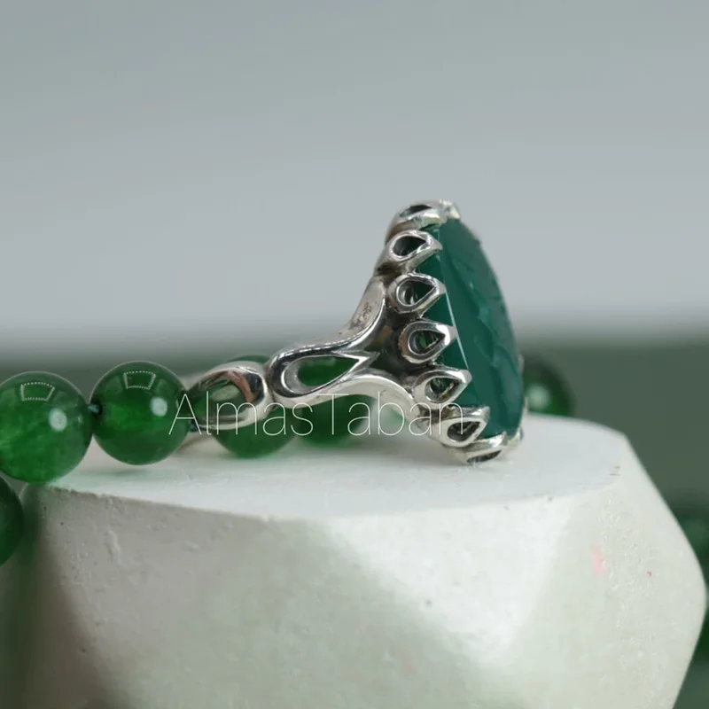 انگشتر نقره مردانه با سنگ عقیق سبز درجه یک ، رکاب انگشتر از نقره اصل با عیار بین المللی 925 ساخته شده و دارای ضخامت استاندارد و کیفیت بالایی می‌باشد ، انگشتر انتخابی شما قابل سایز می‌باشد و شما می‌توانید از منوی بالا ، سایز رکاب خود را انتخاب نمایید. (چنانچه از سایز انگشت خود اطلاعی ندارید در زمان ثبت سفارش گزینه "اطلاع ندارم" را انتخاب بفرمایید تا همکاران ما در اسرع وقت در رابطه با نحوه اندازه گیری سایز انگشتر با شما تماس بگیرند)