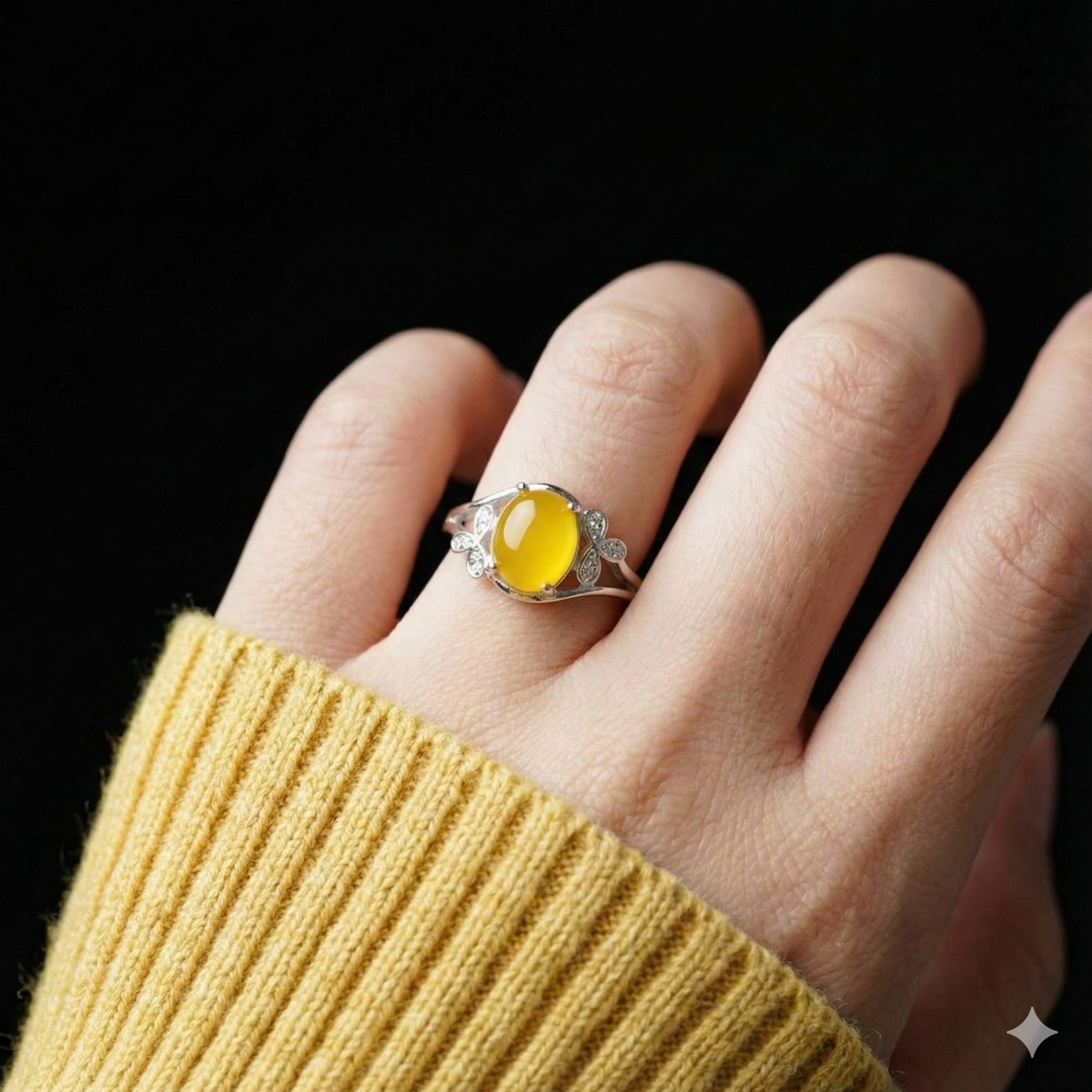 انگشتر نقره زنانه با سنگ عقیق زرد درجه یک ، رکاب انگشتر از نقره اصل با عیار بین المللی 925 ساخته شده و دارای ضخامت استاندارد و کیفیت بالایی می‌باشد ، انگشتر انتخابی شما قابل سایز می‌باشد و شما می‌توانید از منوی بالا ، سایز رکاب انگشتر را انتخاب نمایید.(چنانچه این محصول را برای هدیه میخواهید و از سایز انگشت اطلاعی ندارید در زمان ثبت سفارش گزینه "سایز مناسب هدیه" را انتخاب بفرمایید تا انگشتر انتخابی شما با سایز متداول و معمول بانوان ارسال شود)