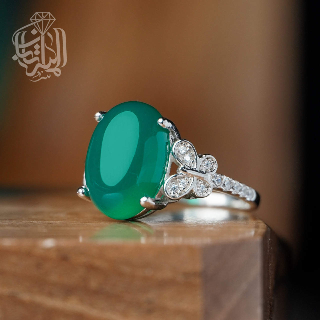 انگشتر نقره زنانه با سنگ عقیق سبز درجه یک ، رکاب انگشتر از نقره اصل با عیار بین المللی 925 ساخته شده و دارای ضخامت استاندارد و کیفیت بالایی می‌باشد ، انگشتر انتخابی شما قابل سایز می‌باشد و شما می‌توانید از منوی بالا ، سایز رکاب انگشتر را انتخاب نمایید.(چنانچه این محصول را برای هدیه میخواهید و از سایز انگشت اطلاعی ندارید در زمان ثبت سفارش گزینه "سایز مناسب هدیه" را انتخاب بفرمایید تا انگشتر انتخابی شما با سایز متداول و معمول بانوان ارسال شود)