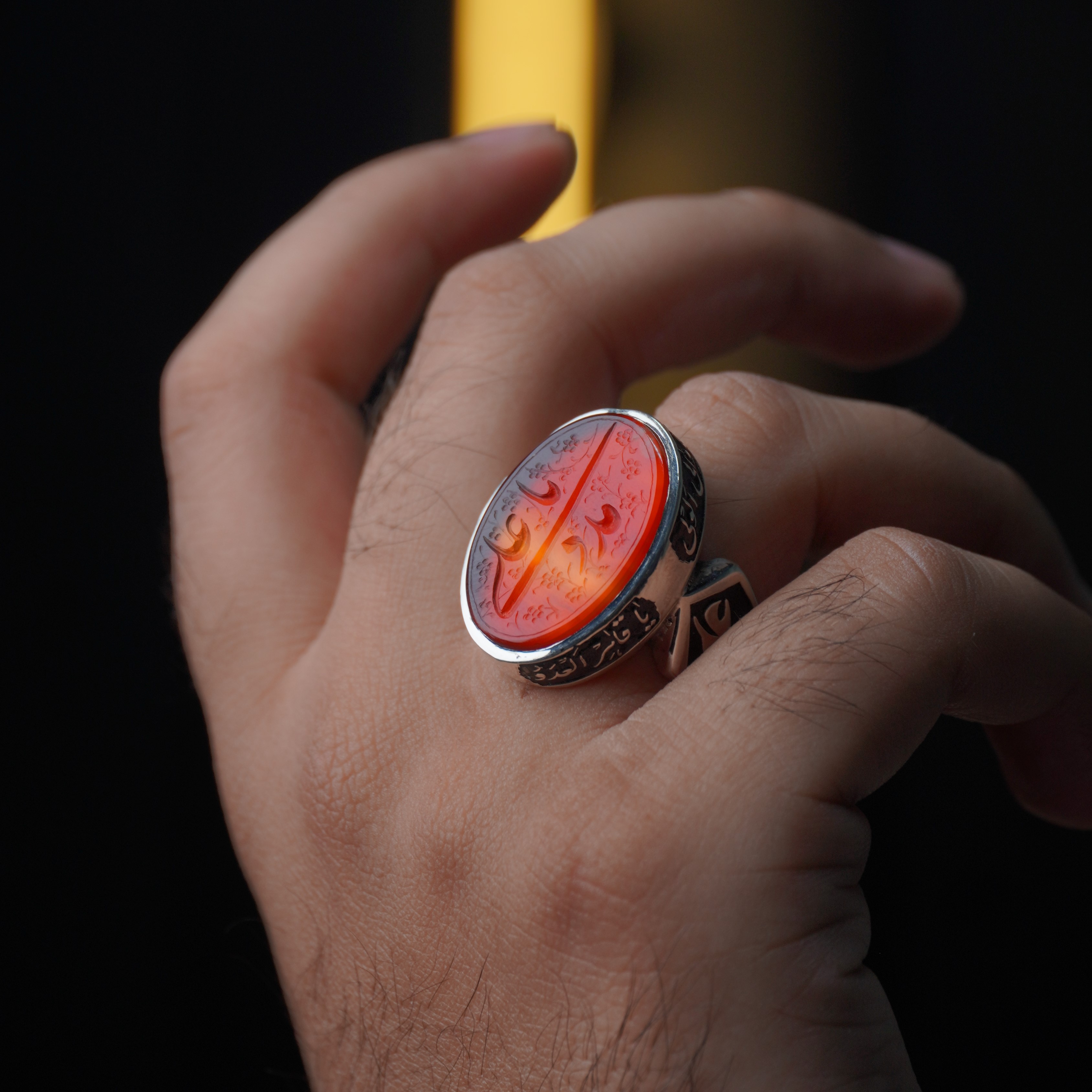 انگشتر نقره مردانه با سنگ عقیق سرخ درجه یک ، رکاب انگشتر از نقره اصل با عیار بین المللی 925 ساخته شده و دارای ضخامت استاندارد و کیفیت بالایی می‌باشد ، انگشتر انتخابی شما قابل سایز می‌باشد و شما می‌توانید از منوی بالا ، سایز رکاب خود را انتخاب نمایید. (چنانچه از سایز انگشت خود اطلاعی ندارید در زمان ثبت سفارش گزینه "اطلاع ندارم" را انتخاب بفرمایید تا همکاران ما در اسرع وقت در رابطه با نحوه اندازه گیری سایز انگشتر با شما تماس بگیرند)