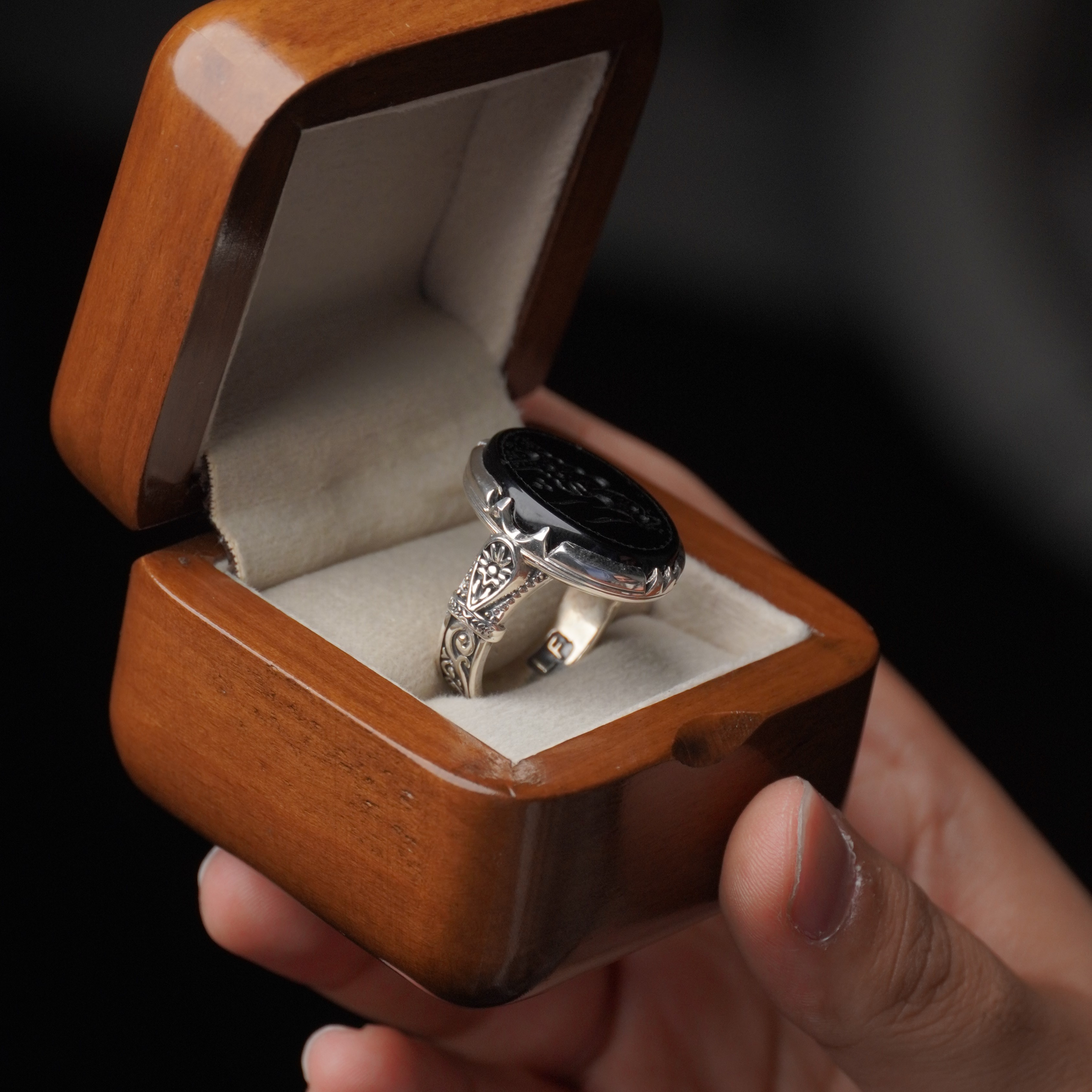 انگشتر نقره مردانه با سنگ عقیق مشکی درجه یک ، رکاب انگشتر از نقره اصل با عیار بین المللی 925 ساخته شده و دارای ضخامت استاندارد و کیفیت بالایی می‌ باشد ، انگشتر انتخابی شما قابل سایز می‌باشد و شما می‌توانید از منوی بالا ، سایز رکاب خود را انتخاب نمایید. (چنانچه از سایز انگشت خود اطلاعی ندارید در زمان ثبت سفارش گزینه "اطلاع ندارم" را انتخاب بفرمایید تا همکاران ما در اسرع وقت در رابطه با نحوه اندازه گیری سایز انگشتر با شما تماس بگیرند)