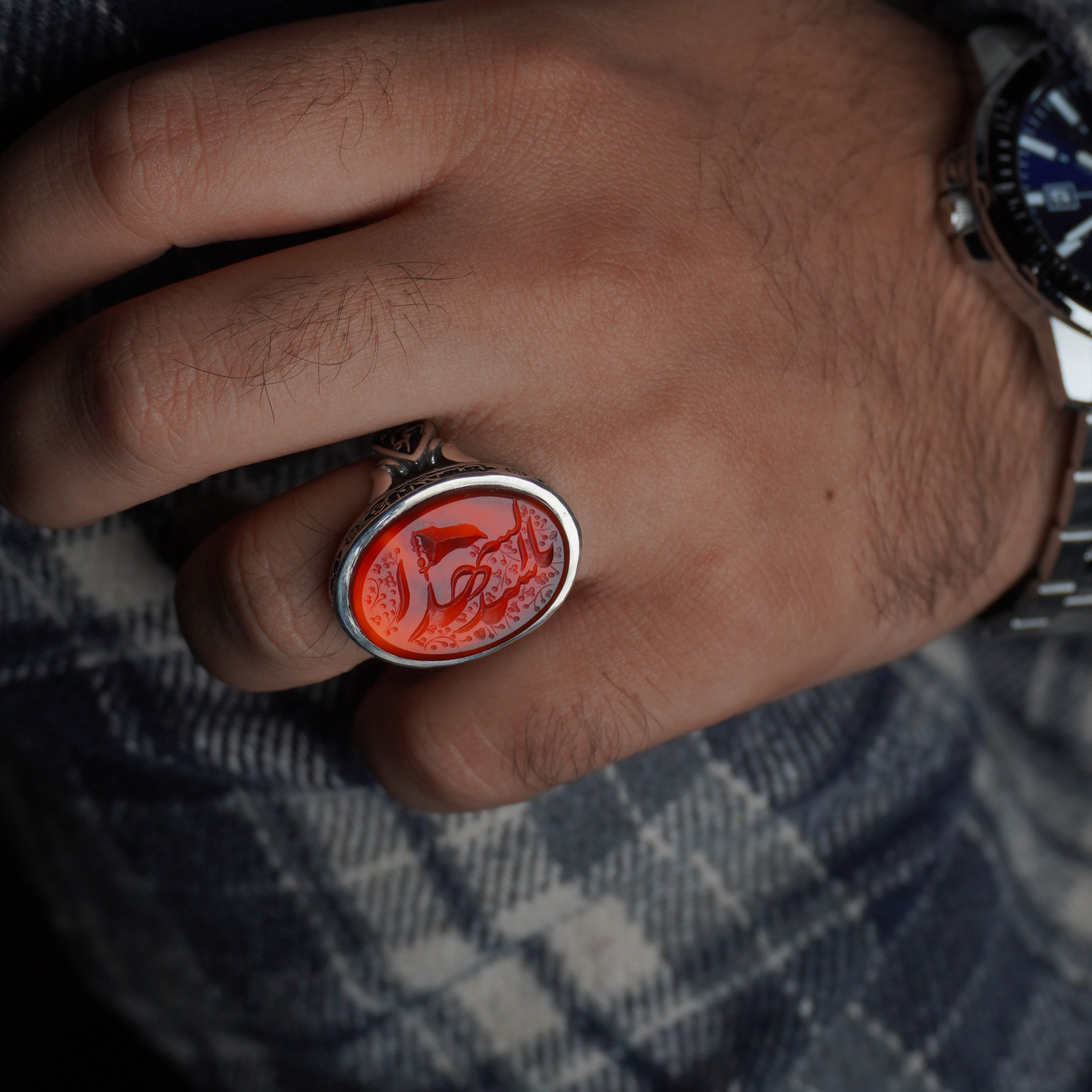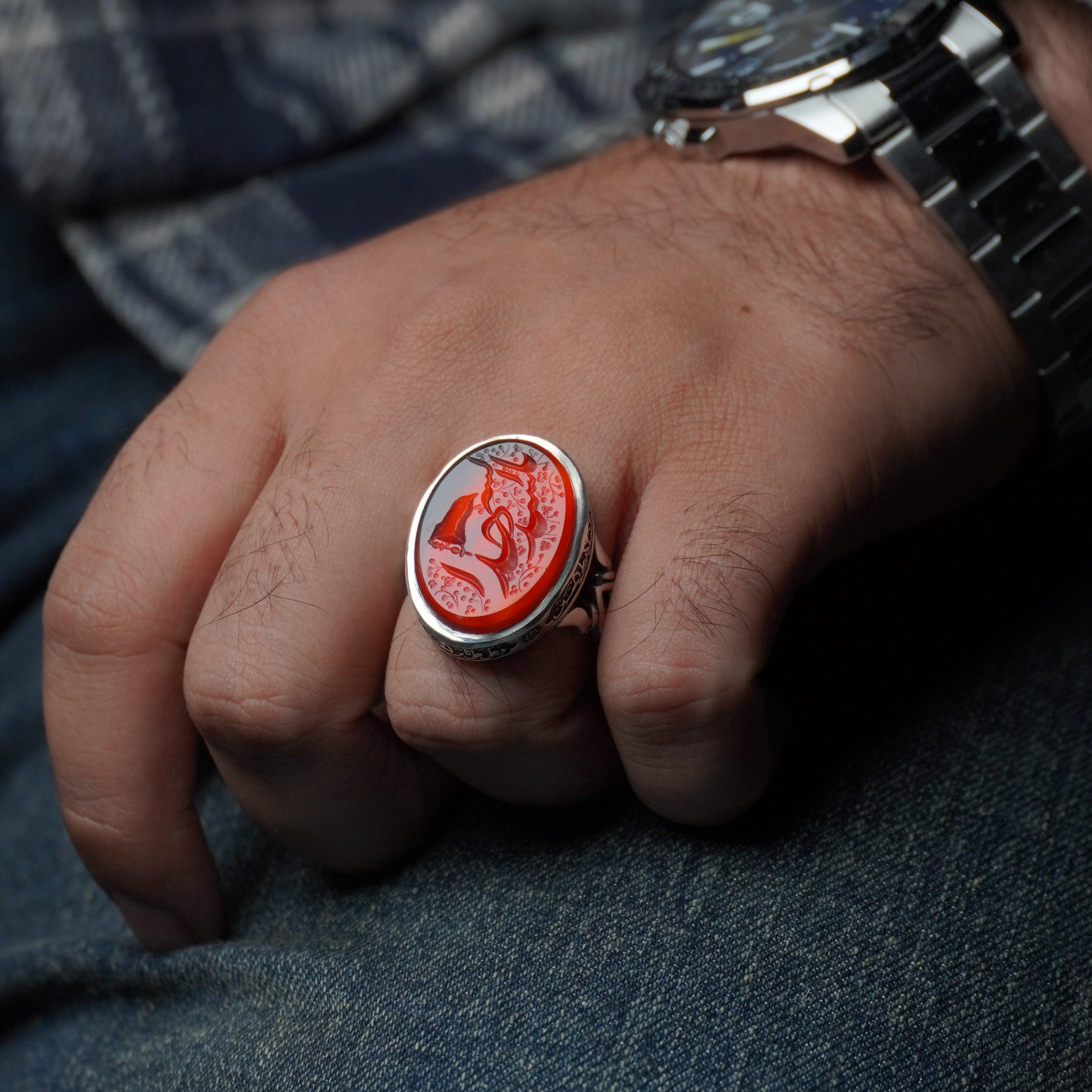 انگشتر نقره مردانه با سنگ عقیق سرخ درجه یک ، رکاب انگشتر از نقره اصل با عیار بین المللی 925 ساخته شده و دارای ضخامت استاندارد و کیفیت بالایی می‌باشد ، انگشتر انتخابی شما قابل سایز می‌باشد و شما می‌توانید از منوی بالا ، سایز رکاب خود را انتخاب نمایید. (چنانچه از سایز انگشت خود اطلاعی ندارید در زمان ثبت سفارش گزینه "اطلاع ندارم" را انتخاب بفرمایید تا همکاران ما در اسرع وقت در رابطه با نحوه اندازه گیری سایز انگشتر با شما تماس بگیرند)
