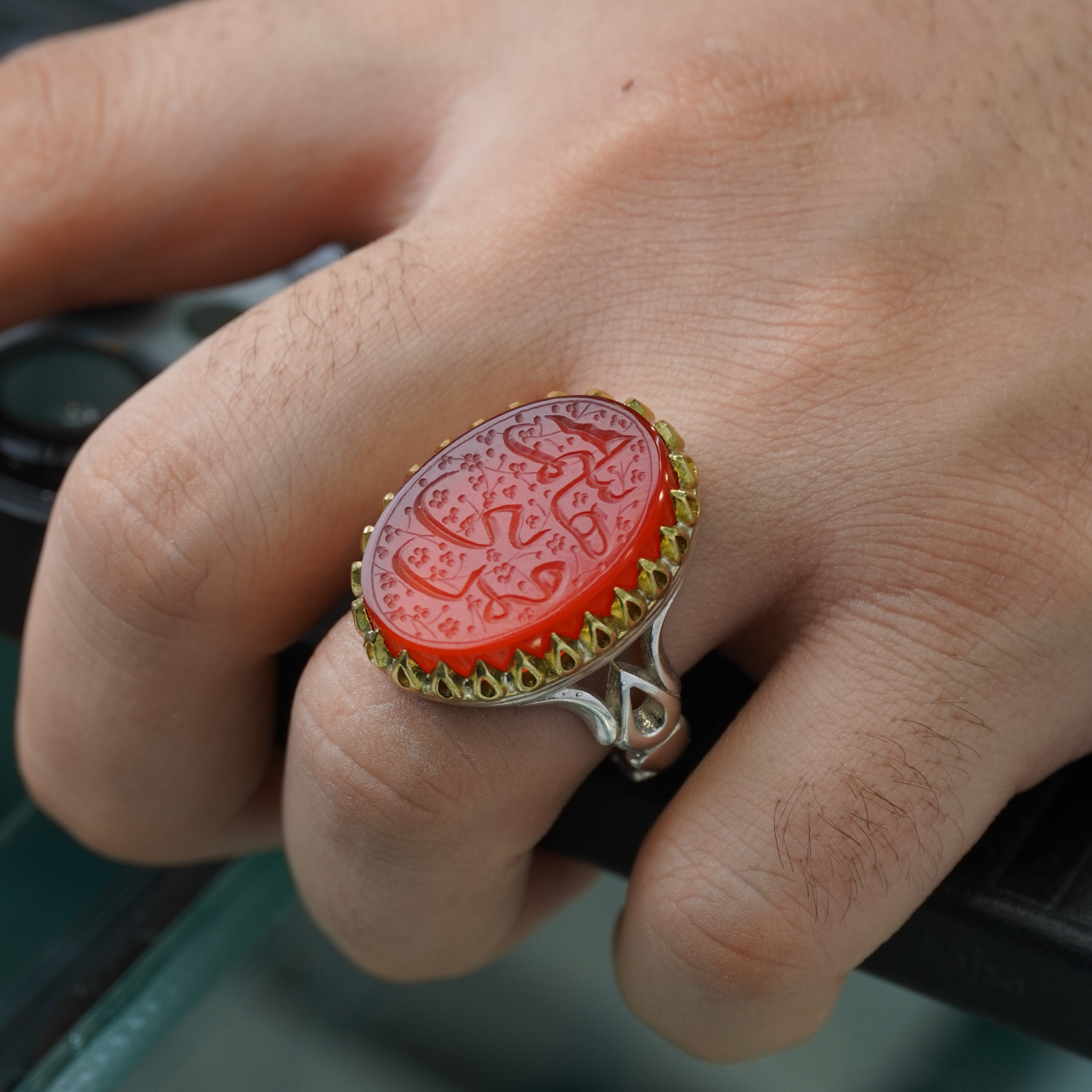 انگشتر نقره مردانه با سنگ عقیق سرخ درجه یک ، رکاب انگشتر از نقره اصل با عیار بین المللی 925 ساخته شده و دارای ضخامت استاندارد و کیفیت بالایی میباشد ، انگشتر انتخابی شما قابل سایز میباشد و شما میتوانید از منوی بالا ، سایز رکاب خود را انتخاب نمایید. (چنانچه از سایز انگشت خود اطلاعی ندارید در زمان ثبت سفارش گزینه "اطلاع ندارم" را انتخاب بفرمایید تا همکاران ما در اسرع وقت در رابطه با نحوه اندازه گیری سایز انگشتر با شما تماس بگیرند)