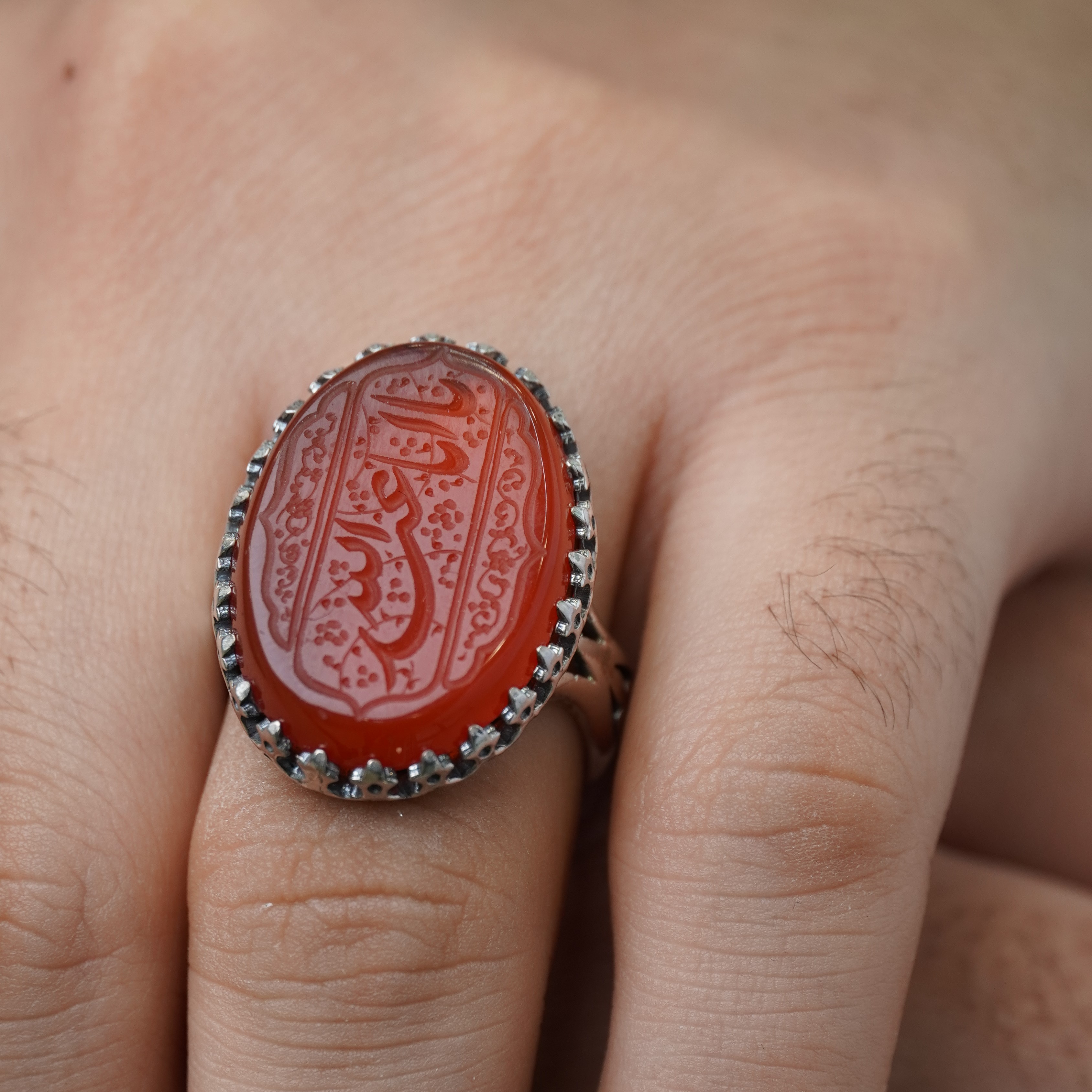 انگشتر نقره مردانه با سنگ عقیق سرخ درجه یک ، رکاب انگشتر از نقره اصل با عیار بین المللی 925 ساخته شده و دارای ضخامت استاندارد و کیفیت بالایی می‌باشد ، انگشتر انتخابی شما قابل سایز می‌باشد و شما می‌توانید از منوی بالا ، سایز رکاب خود را انتخاب نمایید. (چنانچه از سایز انگشت خود اطلاعی ندارید در زمان ثبت سفارش گزینه "اطلاع ندارم" را انتخاب بفرمایید تا همکاران ما در اسرع وقت در رابطه با نحوه اندازه گیری سایز انگشتر با شما تماس بگیرند)