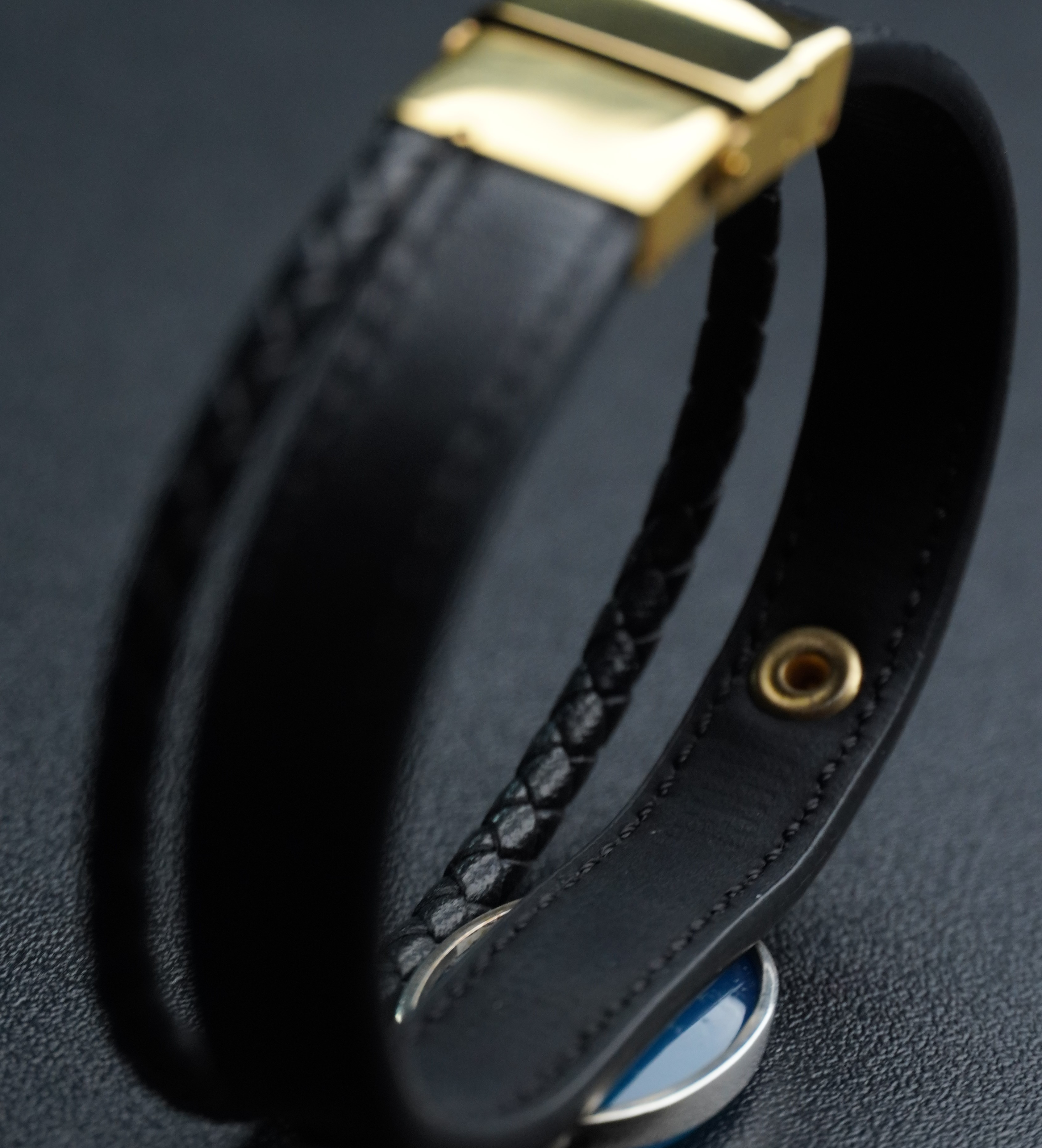 دستبند تلفیقی نقره و چرم مردانه با سنگ عقیق آبی درجه یک ، قاب سنگ از نقره اصل با عیار بین المللی 925 ساخته شده و دارای ضخامت استاندارد و کیفیت بالایی میباشد ، دستبند انتخابی شما قابل سایز میباشد و شما خودتان میتوانید به راحتی سایز دستبند را تغییر دهید.