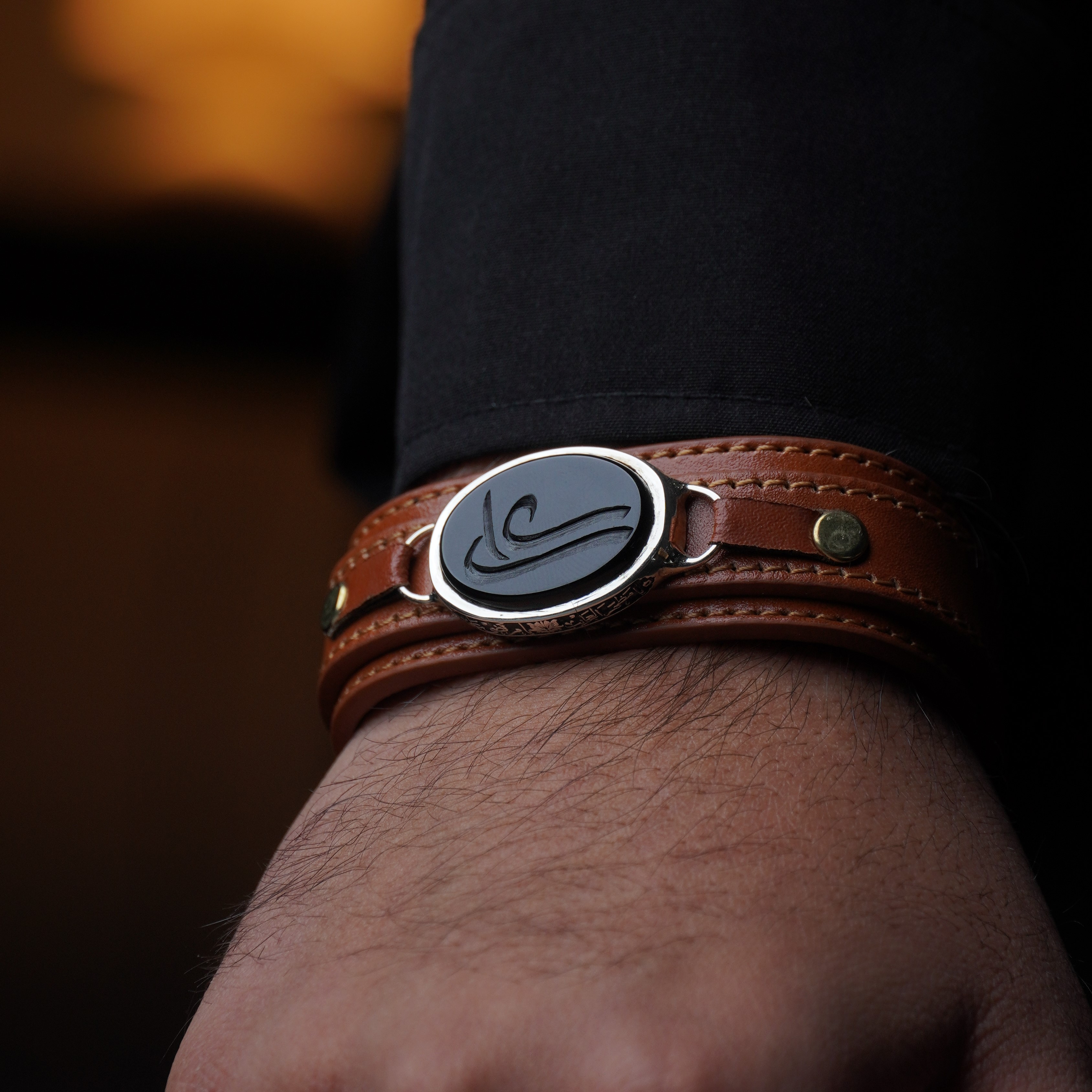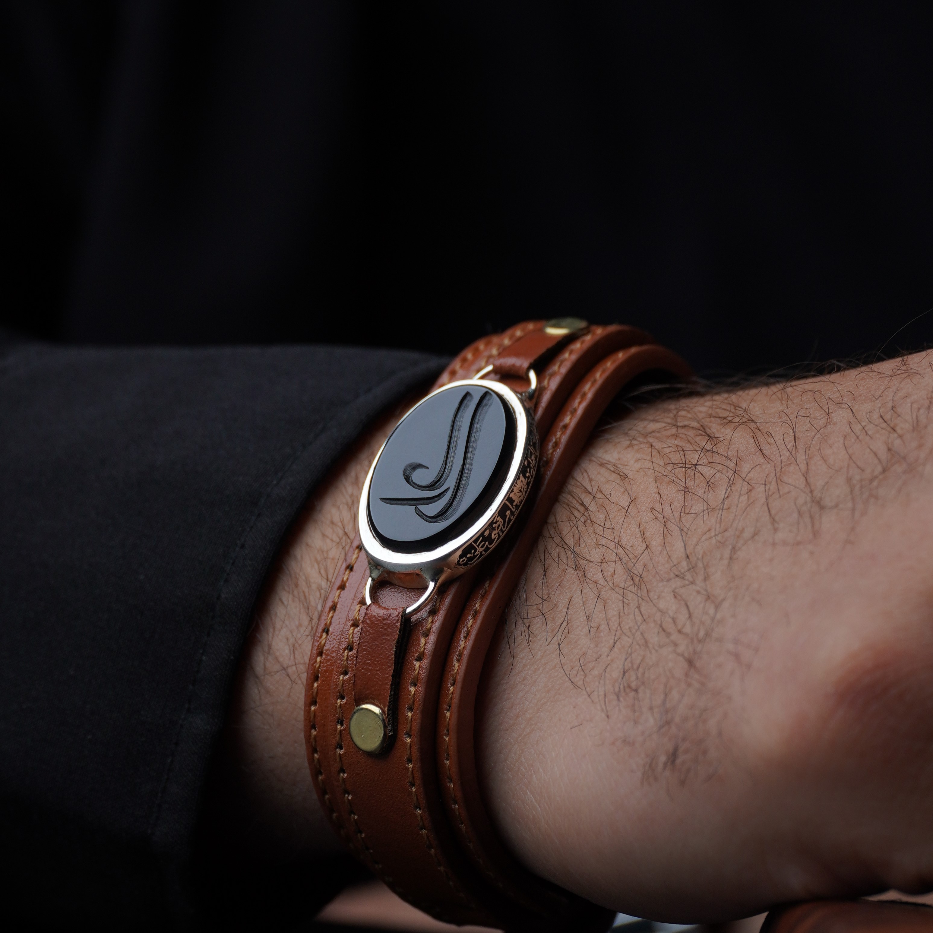دستبند تلفیقی نقره و چرم مردانه با سنگ عقیق مشکی درجه یک ، قاب سنگ از نقره اصل با عیار بین المللی 925 ساخته شده و دارای ضخامت استاندارد و کیفیت بالایی میباشد ، دستبند انتخابی شما قابل سایز میباشد و شما خودتان میتوانید به راحتی سایز دستبند را تغییر دهید.