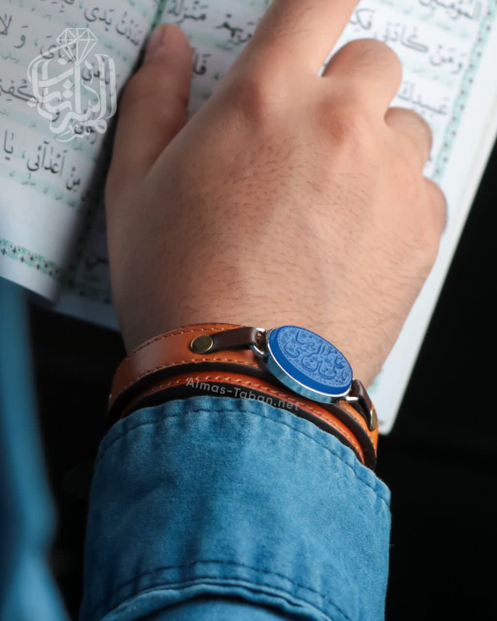 دستبند تلفیقی نقره و چرم مردانه با سنگ عقیق آبی درجه یک ، قاب سنگ از نقره اصل با عیار بین المللی 925 ساخته شده و دارای ضخامت استاندارد و کیفیت بالایی می‌باشد ، دستبند انتخابی شما قابل سایز می‌باشد و شما خودتان می‌توانید به راحتی سایز دستبند را تغییر دهید.